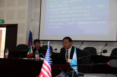 我校代表队连续两年在全国大学生外交外事礼仪大赛中获得二等奖的佳绩,为了在外赛不断激烈的竞争格局中继续保持优势地位,并争取在明年的外赛当中更上一层楼,我校纵横学社特邀宋炳林参赞于11月29日上午为参与全国大学生外交外事礼仪大赛活动的老师和同学进行了业务指导。宋参赞围绕中西礼仪差异、国际礼仪标准确定、礼仪原则的灵活运用、外交礼仪的考察要点等对在场师生进行了详细的培训和指导。