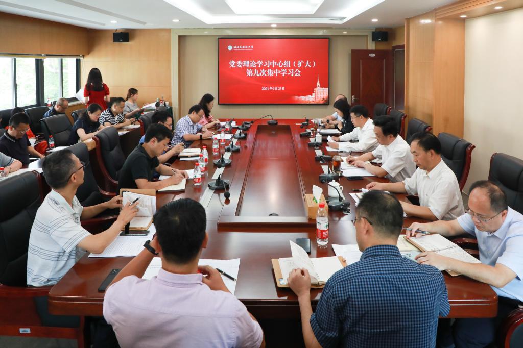 9月23日,学校党委理论学习中心组(扩大)举行了2021年第九次集中学习。全体校领导、党委委员、纪委委员和部分党务部门负责人参加学习。党委书记邹渝主持学习会。