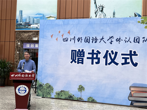 2023年4月23日上午9时,四川外国语大学体认团队赠书仪式在图书馆一楼大厅举行。四川外国语大学副校长卢波、王寅教授、李洪儒教授、林克勤教授、刘玉梅教授、赵永峰教授、王天翼教授、胡志勇副教授及众多校内师生出席了此次赠书仪式。本次仪式由图书馆馆长杨俊主持。
