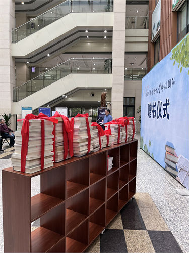 紧接着王寅教授发言。他表示学科发展需要依靠团队力量。体认团队多年来致力于认知语言学本土化研究,团队收集了相关书籍共76套,每套各2本,总共150余本。此外,团队成员所作的几百篇论文也修订成4本论文集,一同捐赠给图书馆。王寅教授指出,在世界读书日进行赠书,使得赠书仪式更多了一层含义。他谦虚地说道:“愿微薄的科研成果,能够为提升川外科研水平作一点点贡献。”