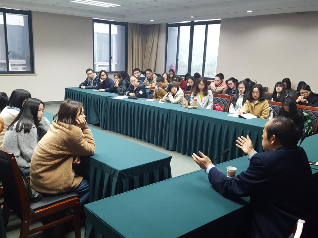 次日下午15:00,万成才先生与四川外国语大学俄语系学生见面会在川外西区行政楼C216会议室举行。俄语系的各位同学积极踊跃地发言,向万成才先生请教包括如何概括苏联解体至今的外交路线、网上关于“特朗普上台后想要联合俄罗斯压制中国”这一说法是否有道理、对于中亚国家来说,俄罗斯是何种地位等一些有关国际问题的疑惑,先生一一耐心作答,现场气氛十分活跃。通过先生的讲解,同学们对一些国际问题有了全新的认识和看法,同时也对国家责任感有了更深的认识,获益匪浅。座谈会结束之前,先生希望同学们迸发学习热情,增强责任感,开阔国际视野,同时也希望同学们成为优秀的,具有强烈国家责任感和国际视野的外语人才。