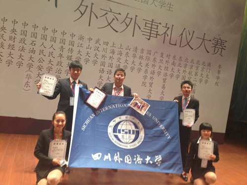 第十二届全国大学生外交外事礼仪大赛于2013年11月2-3日在外交学院沙河校区举行。由国际关系学院2012级郝楠、熊栎天、吉木依莎、阳天天和王玥组成的四川外国语大学代表队荣获二等奖,这是我校既去年获得二等奖后,再次获此殊荣。