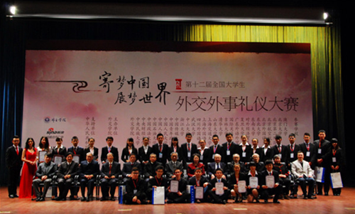 全国大学生外交外事礼仪大赛,始于2002年,是在中国申奥成功和正式加入世贸组织的背景下,在外交部礼宾司的支持下,由外交学院主办的全国性赛事。它旨在普及外交外事礼仪知识、提高大学生基本素质、弘扬中华文明风尚、促进中国与国际的礼仪交往。受到诸多高校的热烈欢迎与积极参与,大赛发展到今天已经有十二届之久。本次全国大学生外事外交礼仪大赛主题为“寄梦中国,展梦世界”,吸引了包括北京大学、清华大学、中国人民大学、复旦大学、澳门大学、外交学院等来自全国各地的二十八所高校的参加。经过两天的激烈角逐,最终外交学院斩获冠军桂冠,四川外国语大学与中国政法大学荣获亚军,东南大学、北京第二外语学院与中山大学并列季军。