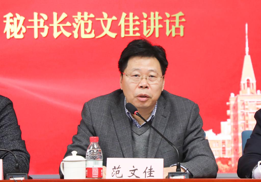 范文佳秘书长代表市委统战部和重庆欧美同学会对学校欧美同学会的成立表示祝贺,对学校党委高度重视欧美同学会的筹建表示赞赏。他指出,川外欧美同学会一要强化思想政治引领,发挥学长们的优势和专长,探索具有川外特色的办会模式;二要突出发挥优势作用,在重庆开放发展大局中找准结合点和着力点,积极助力地方经济社会发展和内陆开放高地建设;三要推动自身能力建设,切实将政治建设放在第一位,同时抓好体制机制创新,努力打造留学人员之家。