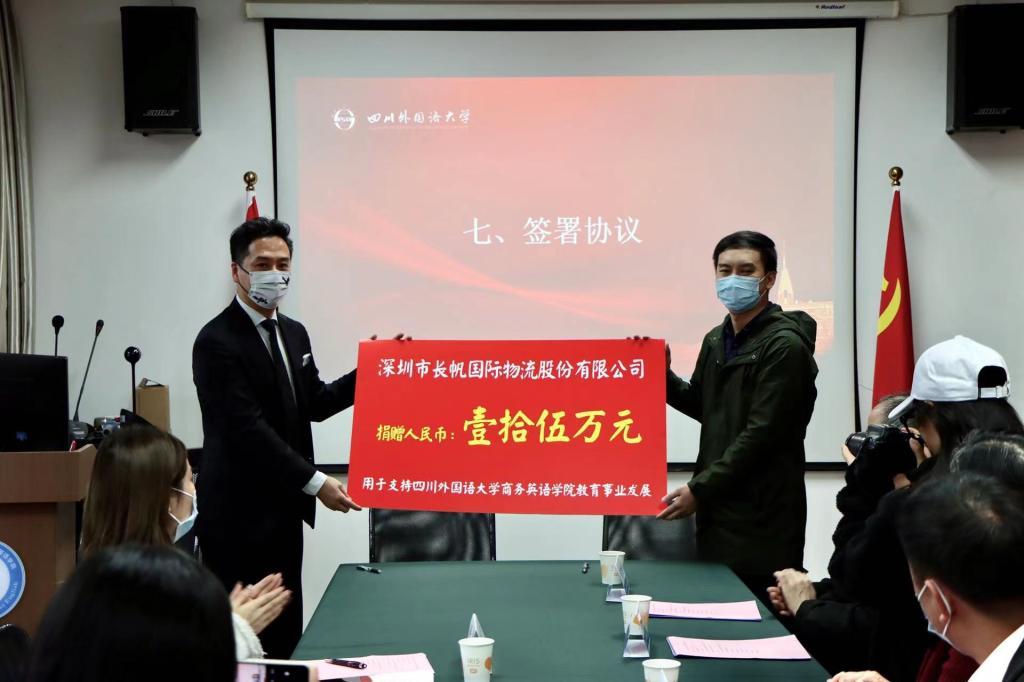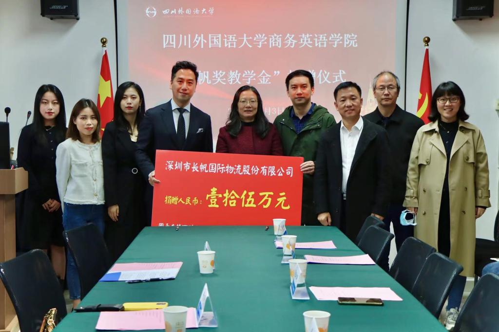 曹静波副总裁在致辞中表示,长帆国际物流股份有限公司与川外有着深厚的合作渊源。他强调,语言、沟通交流能力在国内外贸易网络搭建和对外贸易服务中具有重要意义。希望奖教学金的设立能够助力川外商英进行卓越人才培养,推动双方未来开展更多维度的合作。