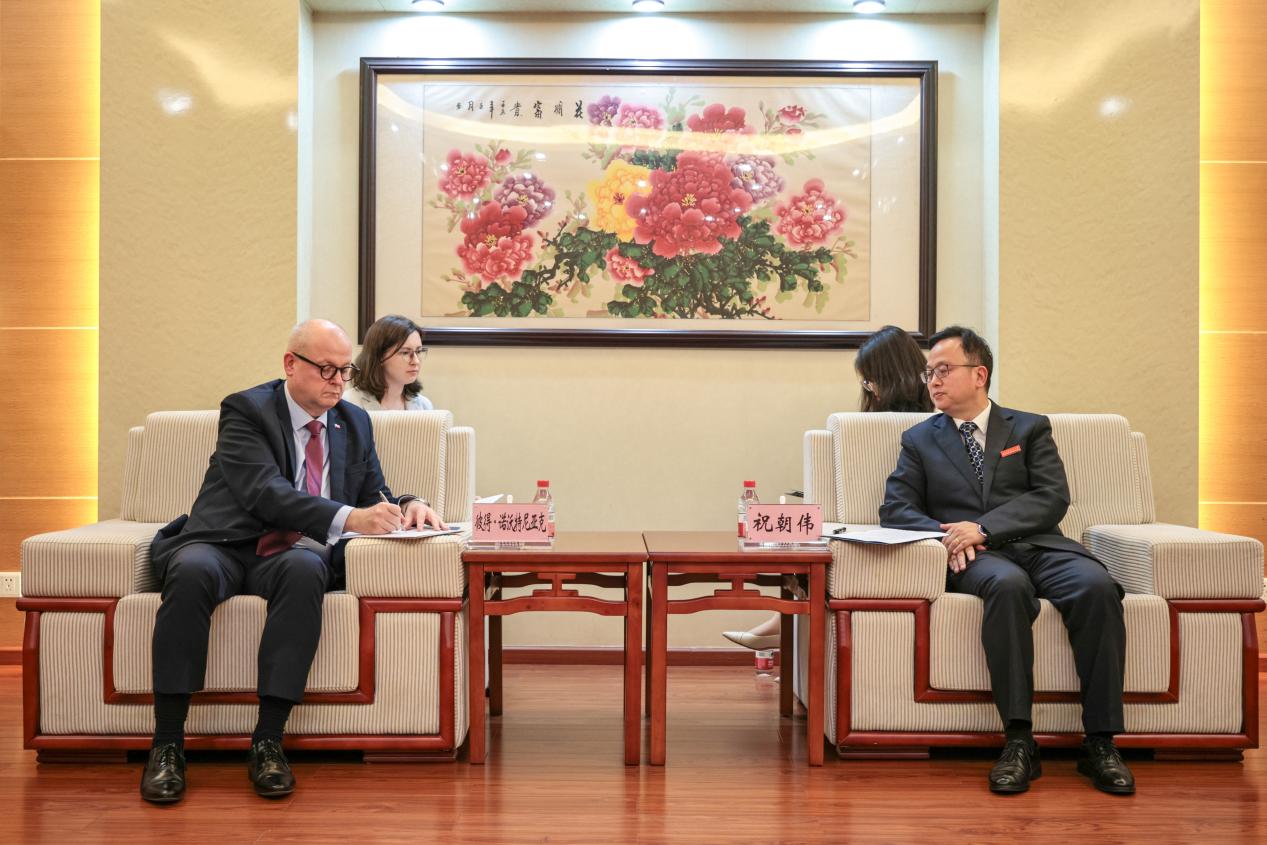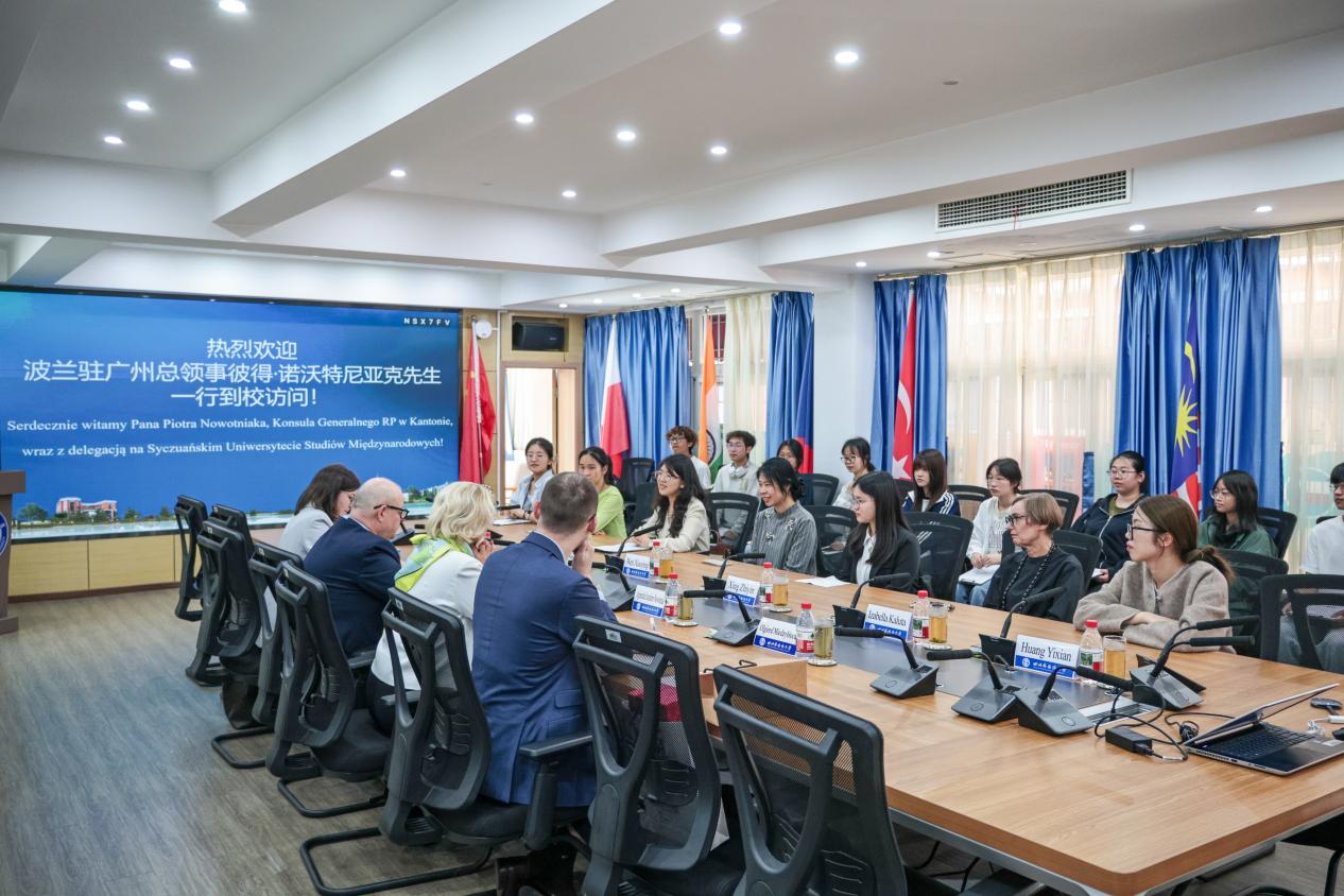 4月23日下午,波兰驻广州总领事彼得·诺沃特尼亚克一行来访我校,校长祝朝伟会见来宾。