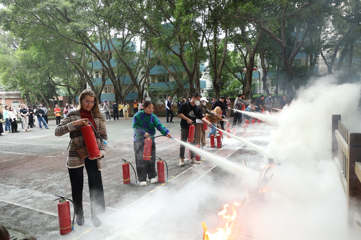 2023年11月8日,保卫处联合国际合作与交流处,组织国际学生在学校东区举行了主题为“预防为主,生命至上”的消防疏散演练。全体在校国际学生、物业相关工作人员共计100余人参加了此次演练。