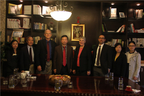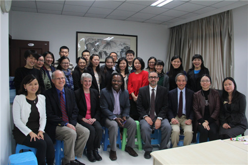 访问期间,代表团与我校大学外语教学部和教育学院开展座谈,针对英语教学法、教育哲学、教育观念,以及听力和综合英语网络课程建设等主题进行了热烈的学术交流,并初步达成合作共识,为我校学生和西雅图社区大学里学习中文的学生建立一对一的伙伴关系。