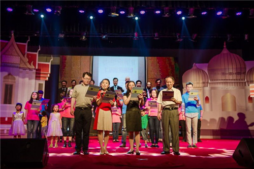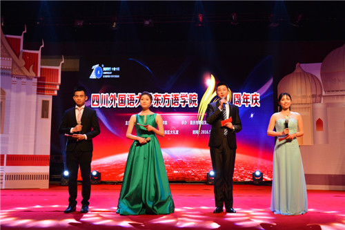 乐勇、副校长郑白玲,东方语学院历届杰出院校友代表,学校各院系和职能部门负责人,以及东方语学院全体师生共襄盛会。庆典晚会以“语言”作为主线的宣传视频隆重开场,视频带领现场全体人员共同回顾了东方语学院十年间从无到有、从小到大,一步步改革发展的风雨历程和其取得的辉煌成就,详细介绍了东方语学院四种语言的发展历程和鲜明特色。