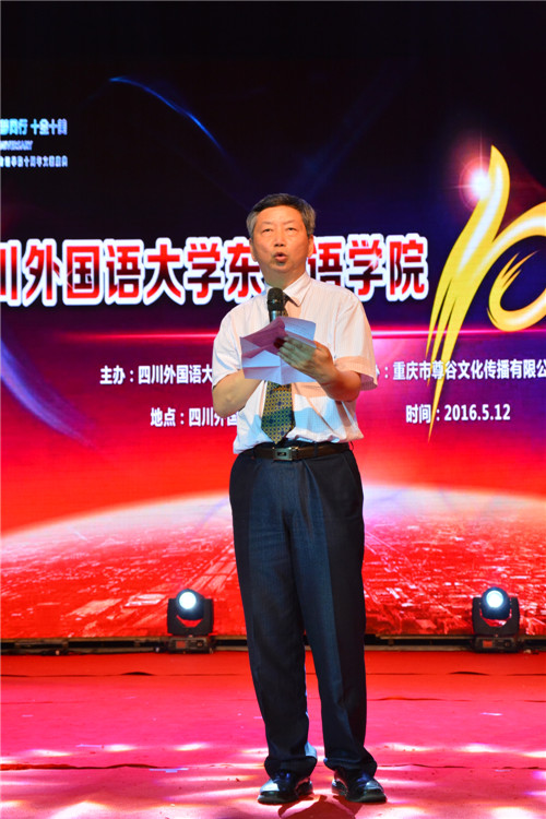 “栉风沐雨满十载,今晚共叙东语情。”2016年5月12日晚7点,四川外国语大学东方语学院成立十周年庆典暨文艺晚会在东区大礼堂隆重举行。韩国国际交流财团、北京事务所所长宋重锡,浦项(重庆)汽车配件制造有限公司总经理金奉男等韩资企业代表,重庆世宗学堂韩方执行院长朴宝恩,北京大学阿拉伯语系张甲民和景云英教授,韩国语翻译学研讨会的与会专家,2016年中国西南地区韩语和汉语演讲比赛的带队老师及选手,我校党委书记明国辉、副校长