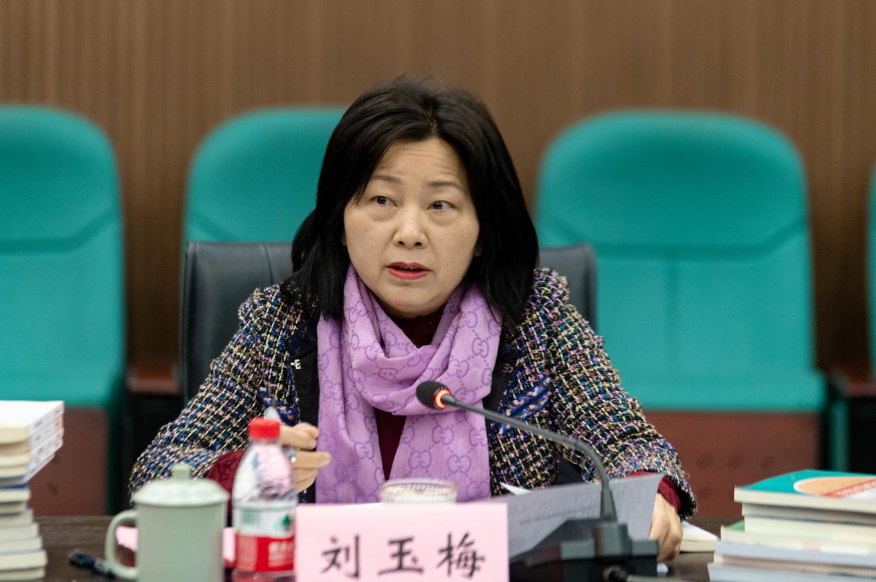 刘玉梅指出学校党委和行政高度重视教材建设工作,系统有序推进《习近平谈治国理政》多语种版本进高校、进教材、进课堂工作和“新文科”系列教材建设。