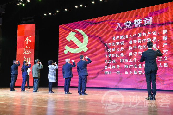 报告会结束后,报告团成员还带领与会全体党员重温了入党誓词。青年党员代表向报告团成员献花,致以崇高敬意。