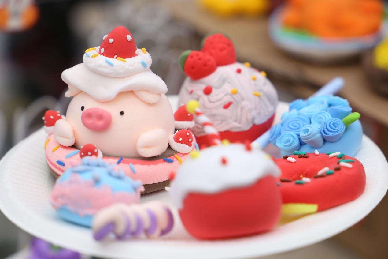 此外,特色展区中提供了许多超轻粘土供大家自由创作,也有老师同学在现场进行演示教学。现场老师、同学和小朋友们都踊跃参与,亲自动手制作。大家在图片和样品的基础上,发挥创造力,制作了许多精美有趣的作品。其中不仅有用超轻粘土制作的十二生肖、瓷器、熊猫等中国元素作品及其他国家的代表元素作品,还有中国粽子,西方下午茶,日本寿司等不同地域的美食特色作品。最后参与的同学们通过创作的作品收集了印鉴,并用所获得的印鉴兑换了限量礼品。