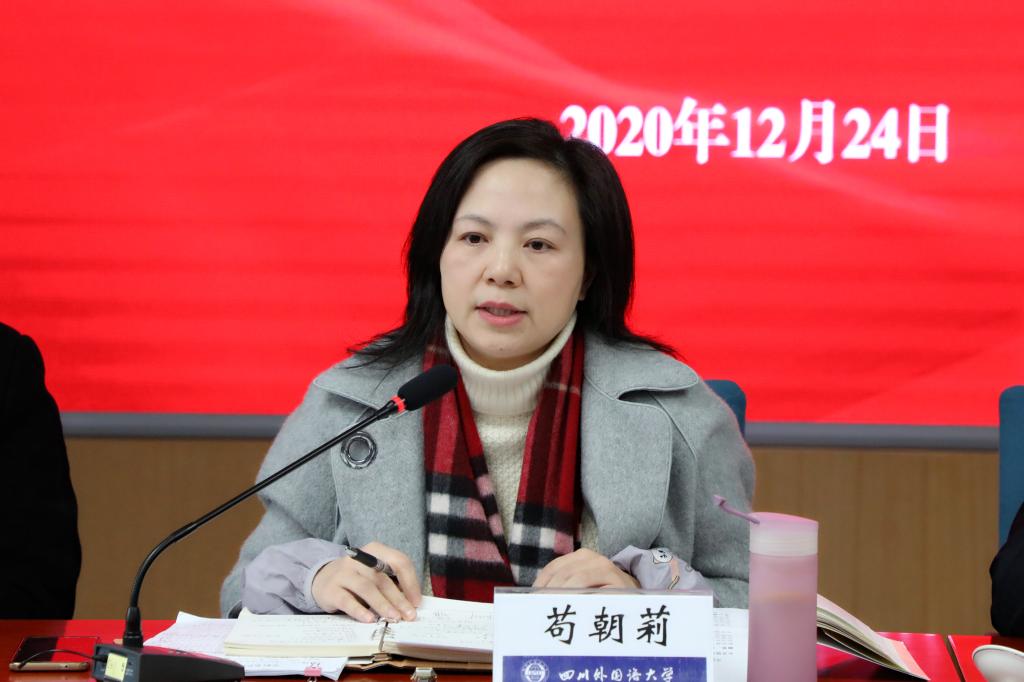 副校长王仁强提出,要做好研究生教育改革,拓展学科含量广度,提升学科高度。副校长祝朝伟提出,要认清教育发展形势的变与不变,培养适应新时代的高素质外语人才与国际化人才。纪委书记苟欣文提出,要增强危机意识,主动求变,积极应变,在危机中育先机,在变局中开新局;副校长郑白玲提出,要破解立德树人的问题、服务国家创新发展的问题、营造优良校风学风的问题和全球视野开放办学的问题。副校长李小川指出,学校要培养有家国情怀,善于沟通,既能够欣赏不同文化,又能传播中华优秀传统文化的国际化人才。副校长李彦提出,要积极顺应我国高等教育发展趋势和要求,努力拓展学校办学空间。党委副书记苟朝莉提出,学校的“十四五”发展规划编制工作进入关键期,同时要思考2035年,甚至2050年学校的远景目标,要从指导思想、基本原则、奋斗目标、办学定位、发展思路等方面,研究制定行动计划,并将行动计划落实落细、定性定量的完成。