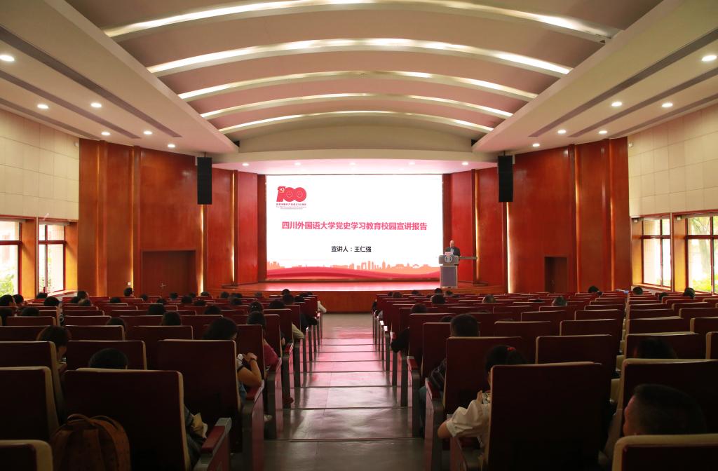 5月27日下午,副校长王仁强为教育规划与评估院、后勤基建管理处、资产管理处、资产管理处、国际关系学院、商务英语学院、语言智能学院教职工作党史学习教育宣讲。