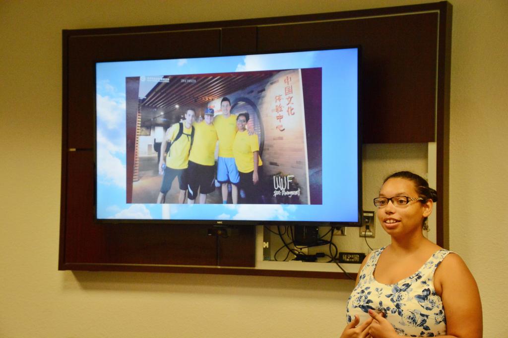当地时间2017年8月23日,新学期开学第一周,西佛罗里达大学体育管理专业学生2017中国夏令营报告会在教学楼85-102举行。西佛大副教务长金佰利·麦克科尔(Kimberly McCorkle),体育管理系系主任南希·黑斯廷斯(Nancy B. Hastings),体育管理系原系主任马修·拉克曼(Matthew Ruckman),西佛孔院美方院长李奎元,中方院长李冬青,孔子学院教职工及部分2017年中国夏令营营员参加报告会。