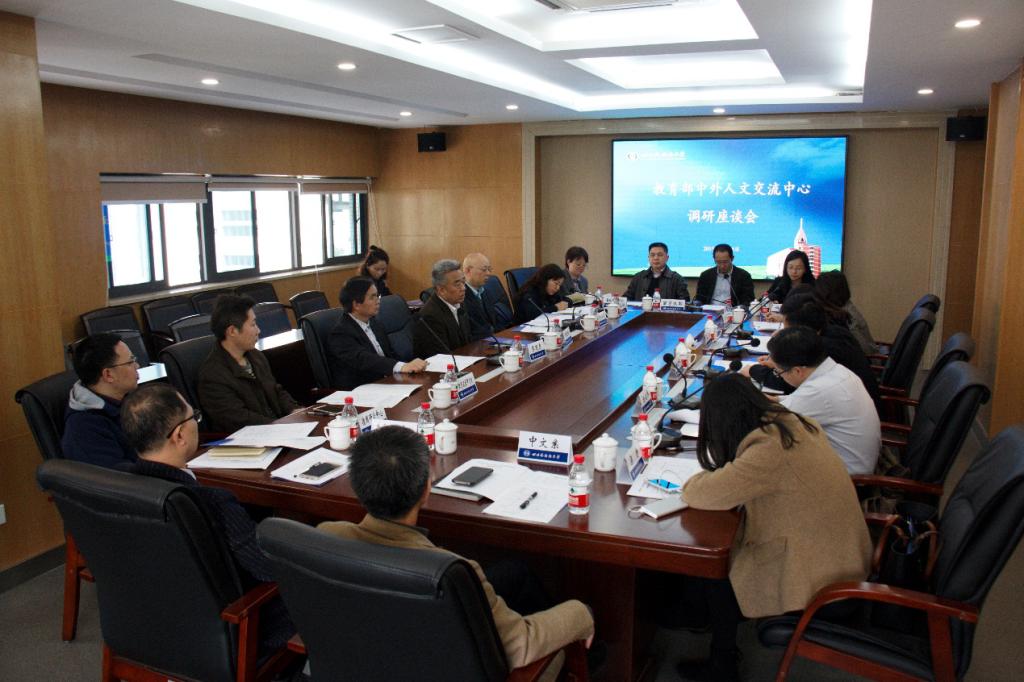 副校长李小川代表学校汇报人文交流工作和未来发展设想。国际合作与交流处、教育发展研究院、国际教育学院、国际关系学院、德国研究中心、非通用语学院、中文系、留学生部负责人分别汇报各部门工作情况,提出工作建议。