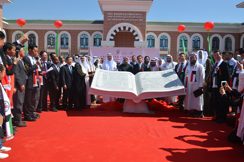 副校长乐勇,国际合作与交流处副处长陈功,东方语学院副院长罗文青、院长助理吴昊一行赴宁夏国际语言学校参加中国国际阿拉伯语师资培训中心落成典礼并洽谈合作办学。