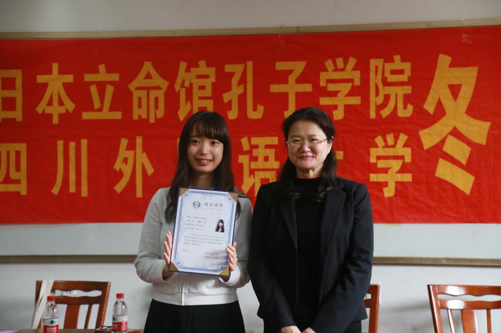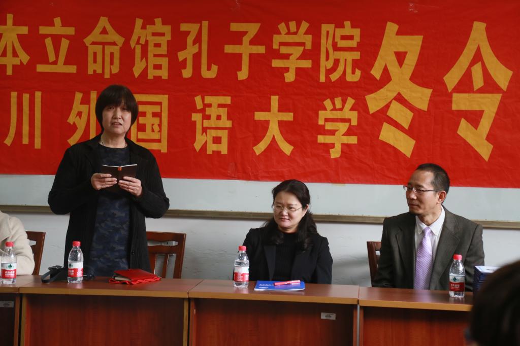 3月19日下午,日本立命馆孔子学院冬令营结业典礼在留学生部204教室隆重举行,四川外国语大学张季菁副校长、立命馆大学孔子学院事务局局长清水郁子女士、留学生部主任张泽民等出席结业典礼。