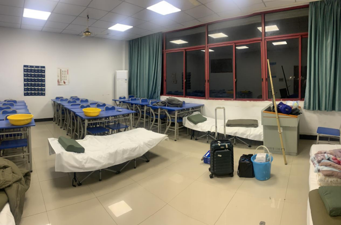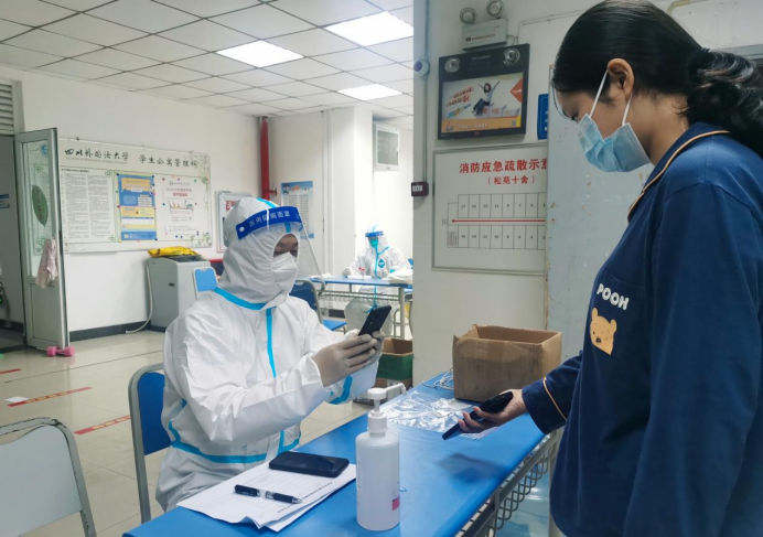 在学校组织部的统一调配下,崔老师被分配在了核酸采集小组,成为一名“大白”,配合专业医生负责对指定的宿舍楼的同学们进行身份扫码。由于志愿者只能睡在办公室或教室,崔老师从接到任务起,就匆匆地收拾了自己的行李,给外婆交代好了接下来的生活安排,也给还在附小上二年级的女儿檬檬叮嘱好了网课的一些电脑软件操作,就在女儿不舍的哭声中离开家门,住进了志愿者的统一楼栋。他快速地学习采集扫码软件的使用,跟专业医生学习防护服的穿脱流程。因为要面对数量巨大的采集人员,以及可能潜在的危险病毒,防护服的穿戴是有极其严格的标准和流程的,特别是脱下的时候,每一个动作都有先后顺序,都要严格消毒。学习并掌握后,崔老师就和同组的搭档医生在学校的统一安排下开始了每天的检测任务。有时候统一分配的任务采集完成,还要在工作组的安排下去办公楼给一些密接的同事进行上门单采。从敲开隔离的同事的办公门,到完成扫码,医生采集标本,到配合医生封好标本,收拾好医废材料,再把标本送给转运组,每一个动作都要求必须谨慎专业,严谨仔细,不能出一丝意外。在出征前的志愿者大会上,工作组就反复强调,顺利完成采样工作的同时,确保我们的志愿者队伍零感染,也是重大胜利。