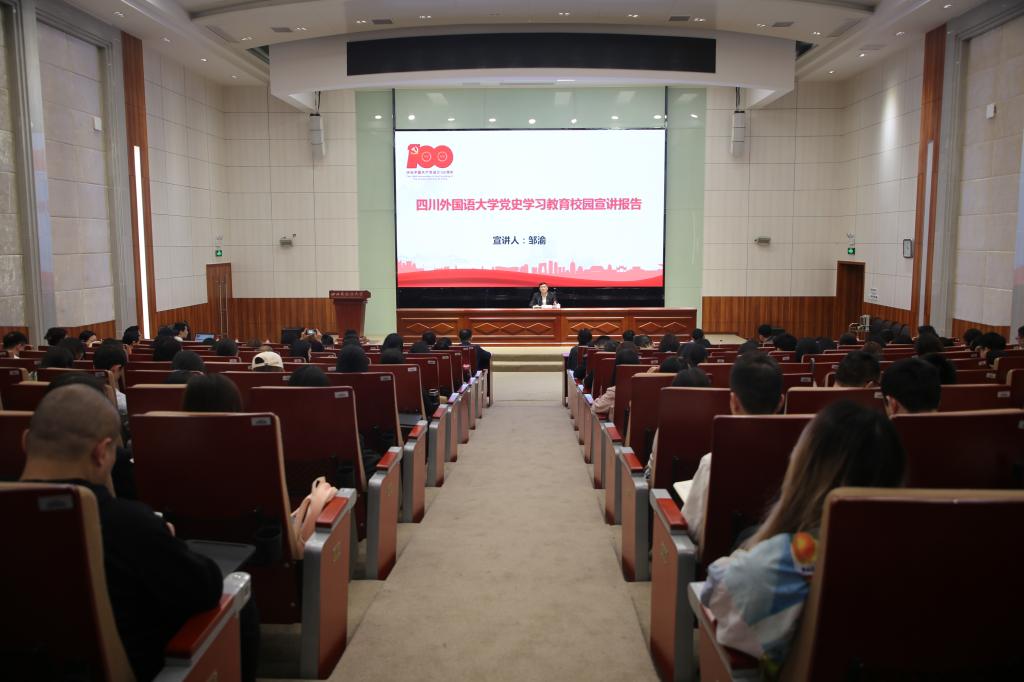 5月27日上午,党委书记邹渝为党政办公室、离退休工作处、马克思主义学院、中国语言文化学院教师及部分学生作党史学习教育宣讲。