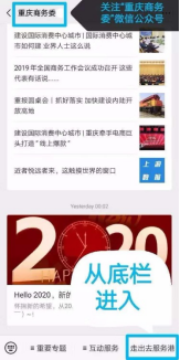1.进入“重庆市商务委”的微信公众号,从底栏进入。