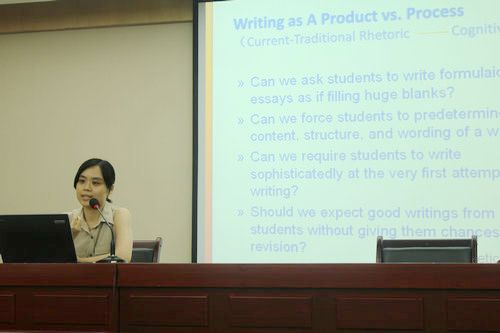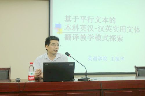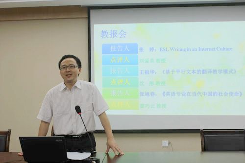 本届教报会由张婷、王祖华、张旭春三位老师主讲,分别以“网络时代的英语专业写作教学”、“基于平行文本的本科实用文体翻译教学模式探索”和“英语专业在中国的社会使命”为题,为全体与会者献上了一场饕餮盛宴。张婷老师将其在美国求学期间所学到的先进教学理念融入了写作教学当中,提出了在网络时代如何充分利用现代科技来促进写作教与学,以多媒体、多模态、多文本、多方式、多手段等方法与技术为学生营造更真实的语言环境,从而提高写作教学的质量和学生的语言使用能力。王祖华老师从对“平行文本”的释义和其三个核心概念开始对其翻译教学的教改意见进行了阐述并提出了本科翻译教学中的“面向英语专业本科的多文本语料库”这一概念,鼓励学生自建语料库、翻译成果互评等。张旭春老师围绕“英语专业在中国的社会使命”展开讨论。张旭春通过对于大学英语专业泛滥情况的介绍和对于英语专业在英国作为学科的形成历史的对比介绍,提出了我们应该如何应对社会转型时期的挑战这一重要论题。张旭春指出,当前中国社会和英国维多利亚时期在社会经济结构的转型和文化价值的危机有诸多相似,所以我国当前的英语专业教学应肩负起“以文化精髓来教化社会、熏陶社会、启蒙社会,培育心智健全的、有现代社会责任感的现代公民,从而引领共产阶级,以至于整个社会向现代公民社会转型”的伟大使命。刘爱英教授、沈彤教授和廖巧云教授分别对三位老师的报告进行了点评,对三位老师的报告内容给予充分的肯定和高度的赞扬。