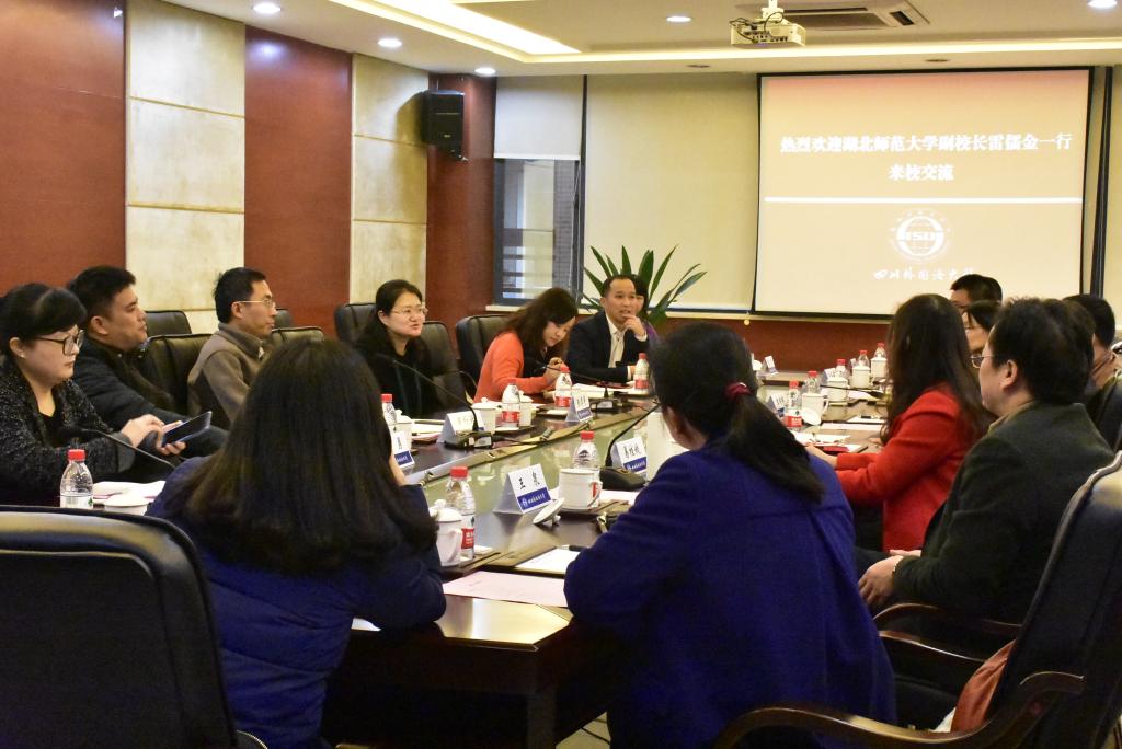12月8日上午,湖北师范大学副校长雷儒金带领学生工作部、人事处、创新创业学院、统战部一行8人来访我校,我校副校长郑白玲、张季菁在图书馆505会议室与其进行了座谈交流。