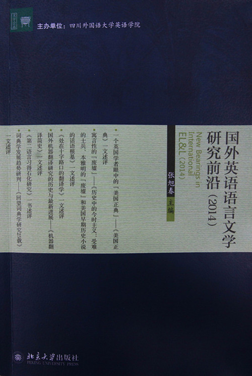 由四川外国语大学英语学院主办的《国外英语语言文学研究前沿(2014)》(new bearings in international el & l)于2014年10月由北京大学出版社出版发行。该丛刊是当代中国英语学界第一种专门以跟踪、译介或述评当今国外英语语言文学研究最新前沿成果为宗旨的英语类学术刊物。