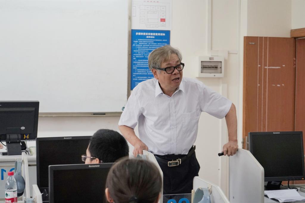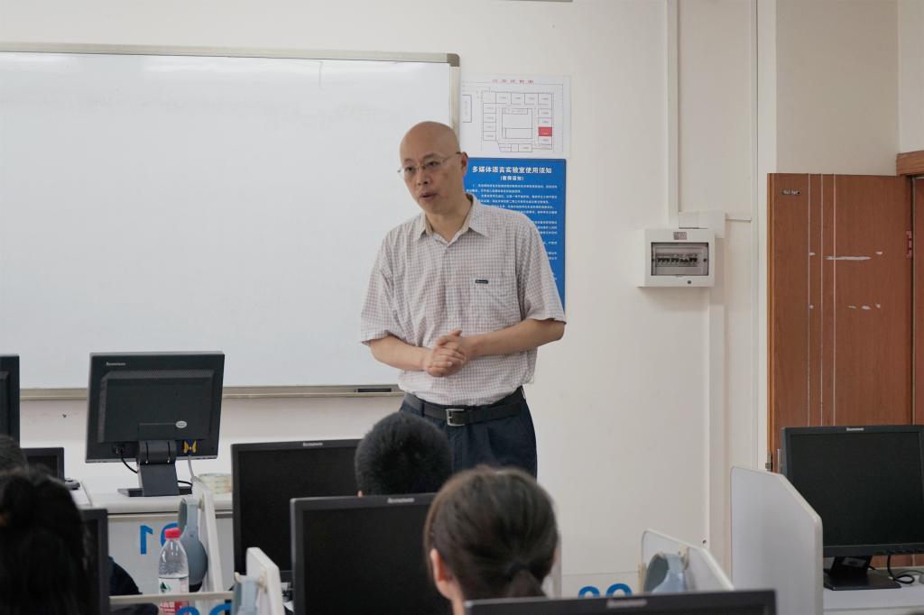 上午9点,我校博士生导师、外国语文研究中心教授王寅正式开课。第一节课以“语言理论与英语教学”为主题,围绕“语言的定义”、“语言学简史”、“语素学习简介”、“语素分析学习法”、“其他语言理论在教学中的应用”以及“体认观语言学”六个方面讲述。课堂上,王寅教授语言诙谐幽默,肢体动作丰富多趣,循循善诱,使得整个学习在欢笑声中度过,课堂氛围轻松愉快。
