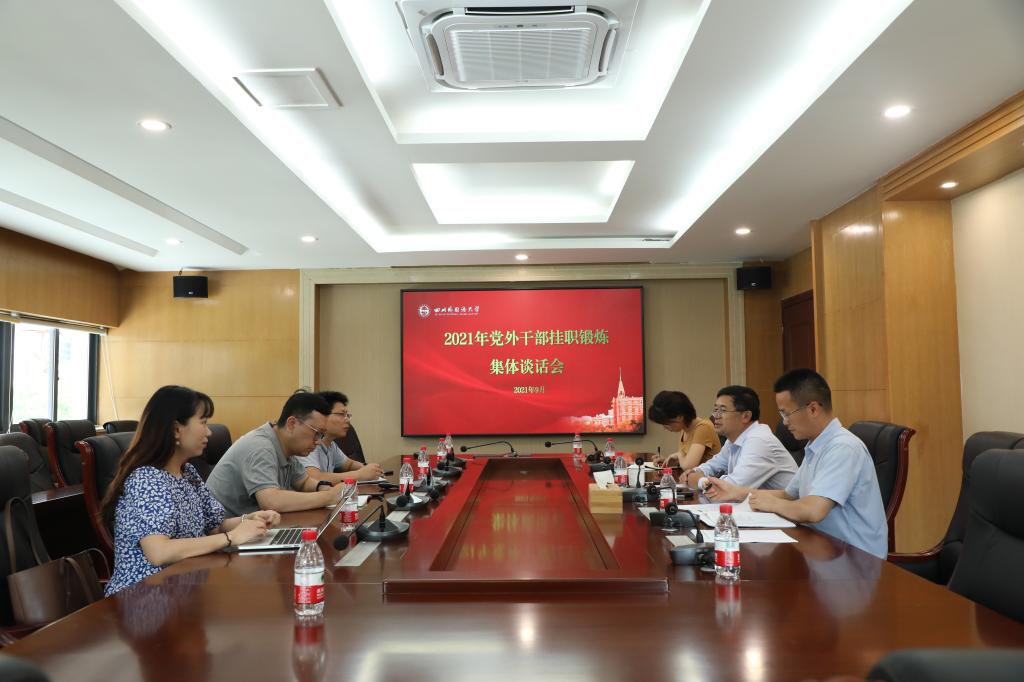 9月3日下午,学校召开2021年党外人士挂职锻炼集体谈话会。党委书记邹渝与3名参加实践锻炼的党外干部进行了集体谈话,党委组织部、党委统战部参加了会议。