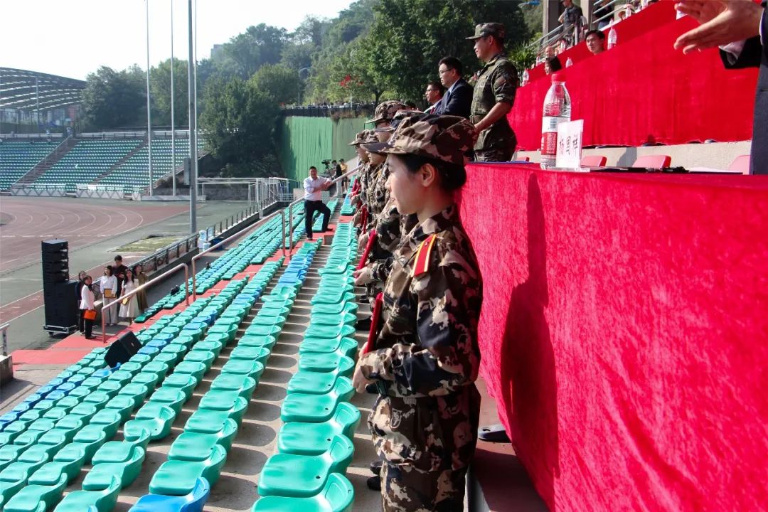 9月30日,四川外国语大学2022级新生军训汇报表演暨总结表彰大会在西区运动场举行。校长董洪川,副校长卢波、李彦、祝朝伟,纪委书记杨国祥,武警重庆总队机动支队领导,学校各职能部门、各学院负责人,军训团指挥组成员及全体参训师生、承训教官参加大会。大会由李彦主持。