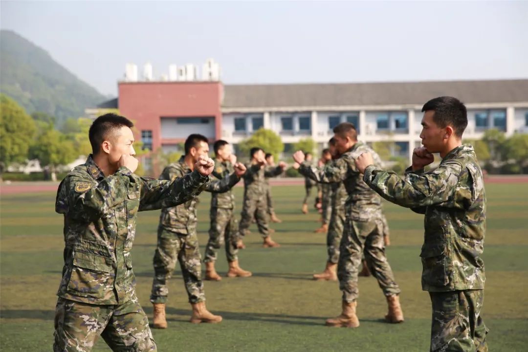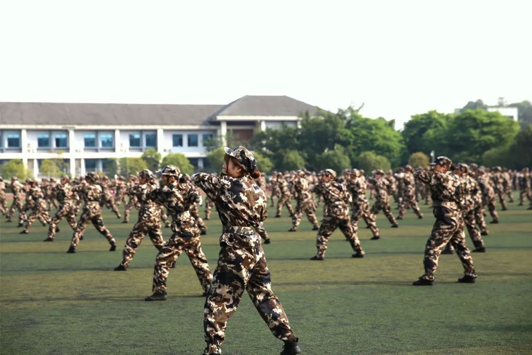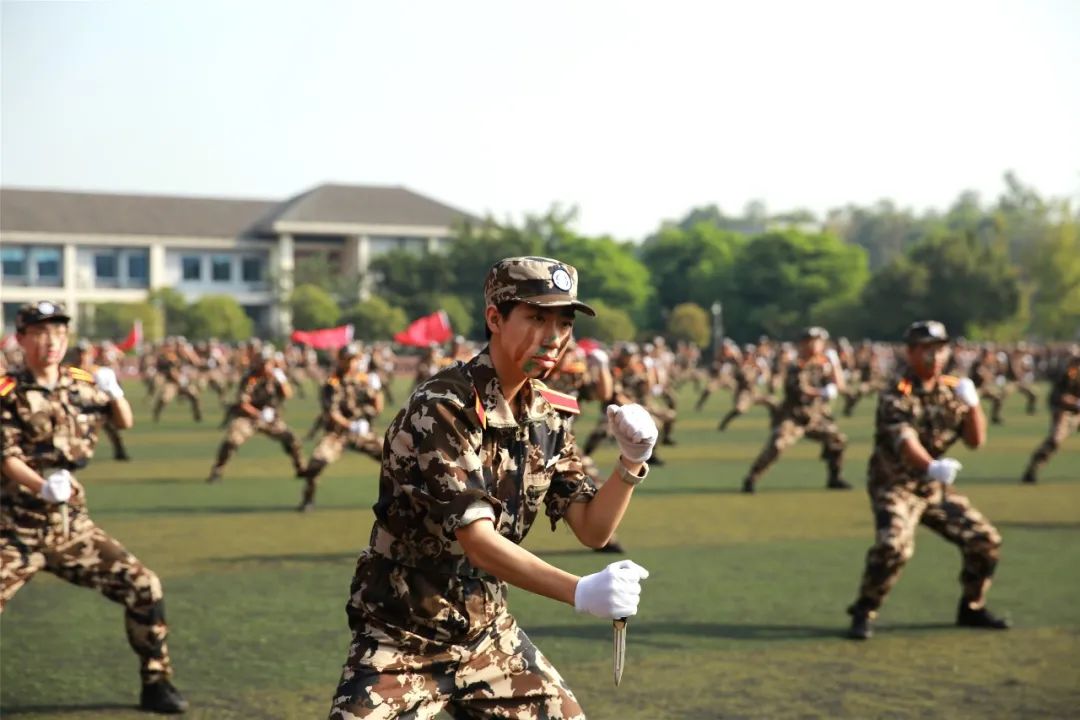 分列式后,军事训练成果汇报表演拉开帷幕。哨声落下,军训团全体教官率先垂范,一套擒敌术表演点燃了全场热情。营阵间各展风采,气势如虹:匕首操锐不可当、擒敌拳虎虎生威、心理健康操亦刚亦柔……尽显川外男儿的铿锵斗志与女兵的巾帼风采。