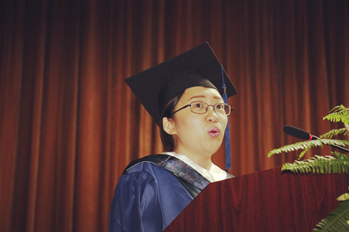 东方语学院朝鲜语方向的毕业研究生孙雪婷代表全体毕业研究生发言