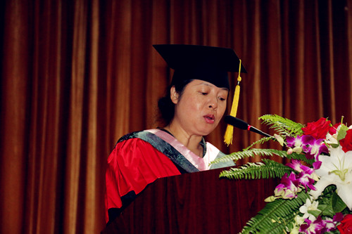 之后,研究生导师代表陶曦教授发言。她谈到对成功的认识,希望各位毕业研究生们在未来的工作、生活中,无论遇到再大的困难、压力、诱惑,都能够坚守心中的理想和道德底线,在追求成功的道路上不要迷失方向。她说:“成功的衡量标准是你秉持的原则,而非钱或权或社会地位。”并祝毕业研究生们生活幸福安康!