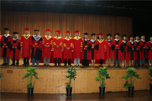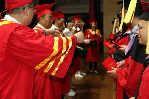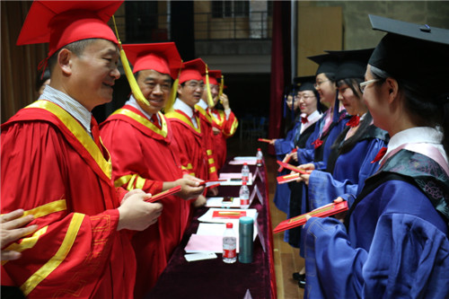 校领导向获得硕士学位的研究生拨穗授位、颁发证书