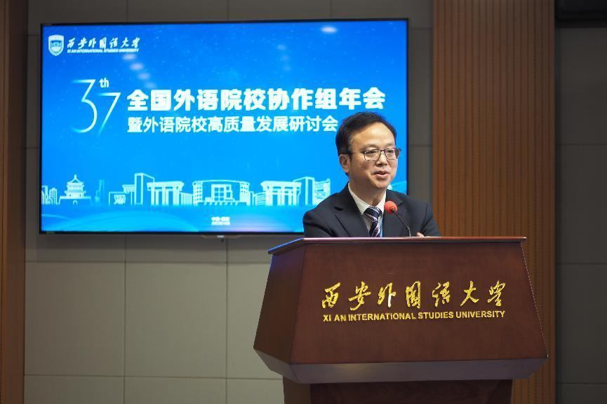 10月25日至26日,第37届全国外语院校协作组年会暨外语院校高质量发展研讨会在西安外国语大学召开。本次年会的主题是“新时代外语院校的使命担当与高质量发展”。北京外国语大学、上海外国语大学等14所外语外贸院校的校领导及办公室、教务处、研究生院等部门负责人参会。我校由祝朝伟副校长率队参加。