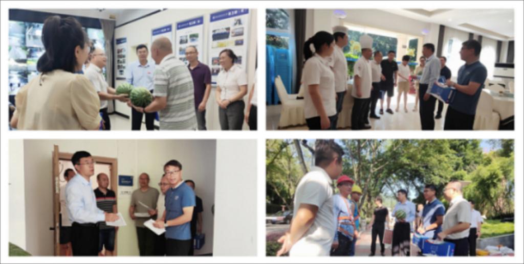 每到一处,校领导们都与大家亲切交谈并握手致谢,仔细询问工作、生活、身体等情况。邹渝代表学校对大家的辛勤付出,保证学校暑假期间各项工作正常开展表示衷心的感谢,希望各岗位职工注意防暑降温,科学合理安排暑期工作任务,将安全摆在首位,施工工地现场管理要更加精细,确保暑期校园安全稳定。