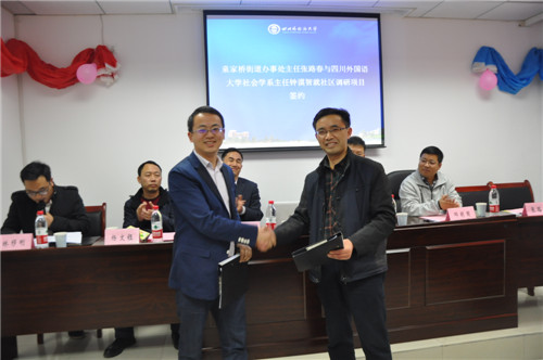 主任张路春与我校社会学系主任钟谟智就童家桥街道委托的社区调研项目签约。