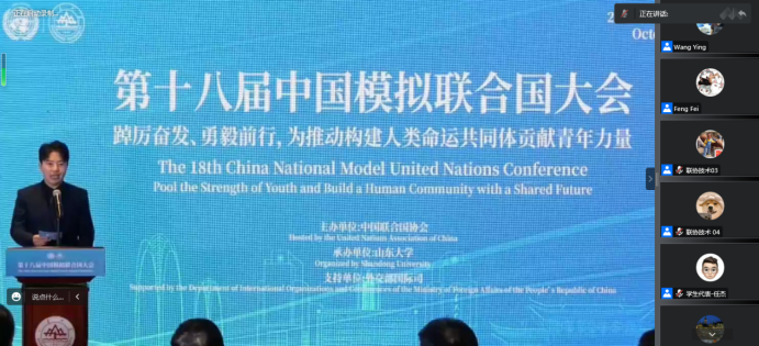 2022年10月27日至30日,由中国联合国协会主办、外交部国际司支持、山东大学承办的第十八届中国模拟联合国大会(The18th China National Model United Nations Conference)在山东青岛顺利举办。大会收到了联合国秘书长安东尼奥·古特雷斯发来的贺信,同时,中国联合国协会副会长兼总干事胡文丽、外交部国际司参赞陈凯、山东大学党委副书记王君松等出席大会开幕式并致辞。