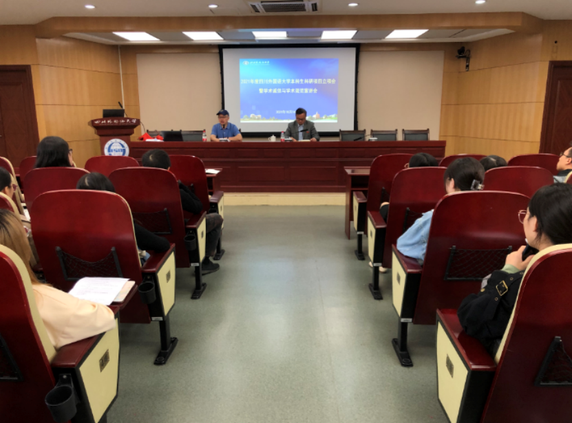 随后,科研处罗惜老师介绍了校级本科生科研项目的管理流程、经费预算安排、资金使用要求以及结项要求等相关情况。科研处胡安江处长为同学们做了学术诚信与学术规范的宣讲,向同学们宣传和解释了相关文件规定和规范要求,以及如何避免学术不端行为。