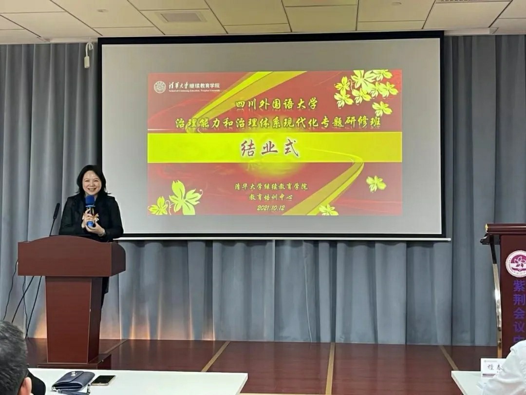 10月12日,学校2021年治理能力和治理体系现代化专题研修班在清华大学顺利结业。校党委副书记苟朝莉出席结业式并讲话。