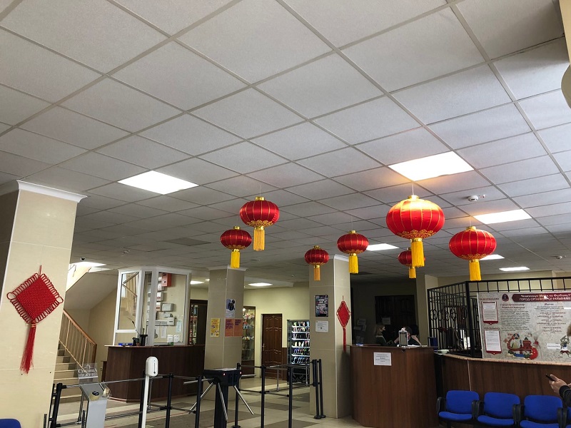 孔子学院的教师和参赛者将灯笼挂在了下语大教学大楼的一楼大厅和下诺夫哥罗德市步行街的广场上空,吸引了很多市民前来围观。