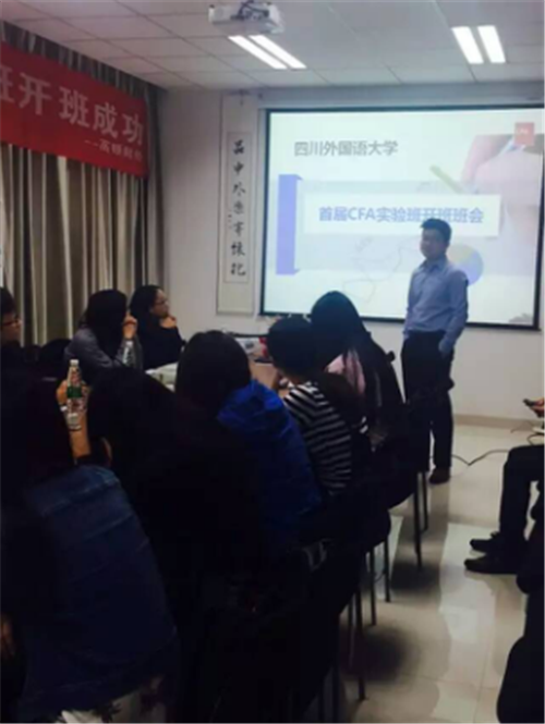 据悉,cfa全称chartered financial analyst(特许注册金融分析师),是全球投资业里最为严格与含金量最高的资格认证,被称为“全球金融第一考”,通过级别证书由cfa协会(cfa institute)授予,该组织也是全世界上最著名的投资行业专业团体之一。本次商务英语学院开办cfa实验班,是继cima(特许注册管理会计师)后,商务英语学院为广大学子提供的又一国际资格认证课程平台,是本院培养复合型人才的重要切入口之一。为保证最精良的课程内容,学院和国内财经培训领头机构上海高顿财经强强联手周末授课,全程均邀请获得cfa会员资质的业界人士参与授课。另外,自本学期始,cfa实验班也将作为商务英语学院的长期项目,面向全校各院系,以行政教改班、周末实验班等形式持续开展,欢迎广大师生前往学院了解咨询。