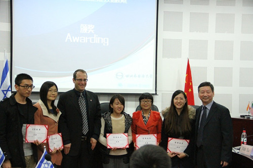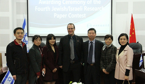 会谈结束后,乐勇陪同蓝天铭出席“四川外国语大学第四届犹太以色列论文大赛颁奖仪式”。