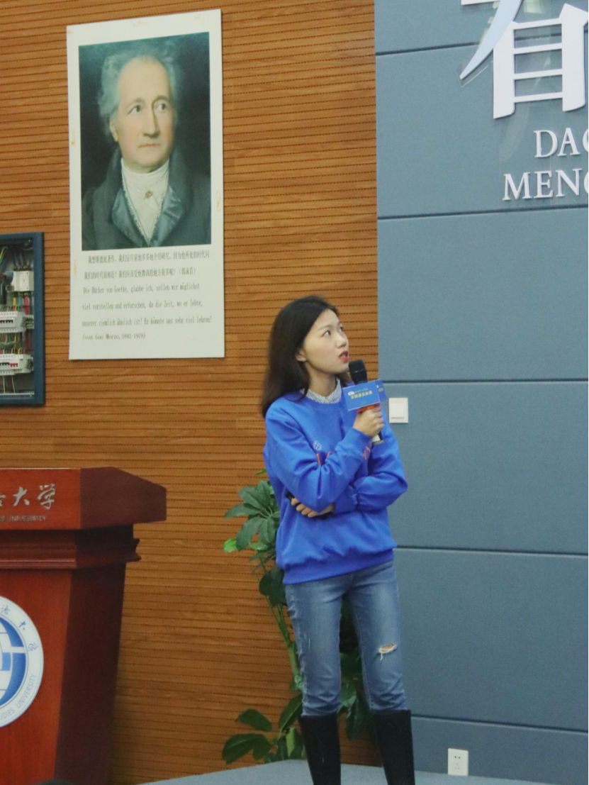 商务英语学院2018级王欣然以“蝴蝶效应”为喻,告诉我们“不要忽视任何一个小小的当下,认真待人,积极尝试,总有一天你会得到应有的回报。”
