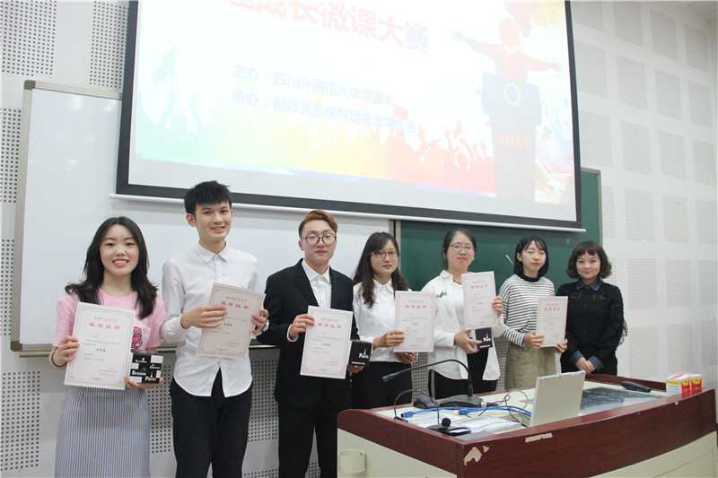 2019年4月19日上午十点,由四川外国语大学学生处主办,国际关系学院团总支学生会承办的第五届大学生心理成长微课大赛决赛在西区教学楼A2-2成功举行。教务处副处长陈汝平、国际关系学院党总支书记高绍邦、商务英语学院党总支书记岳兴懋、出国培训部、国际教育学院、继续教育学院党总支副书记陈睿、党委宣传部熊鹰老师担任了此次比赛的评委。学生处副处长何敏以及各组参赛选手的指导老师全程参加了比赛。