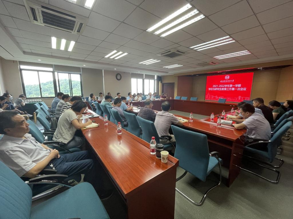 9月14日下午,2021-2022学年第一学期学位与研究生教育工作第一次会议在立德楼C517召开。校长董洪川、副校长王仁强、研究生教育督导成员、各学院主要负责人、分管研究生教学副院长及教学秘书、有关职能及教辅部门负责人参加会议。王仁强主持会议。