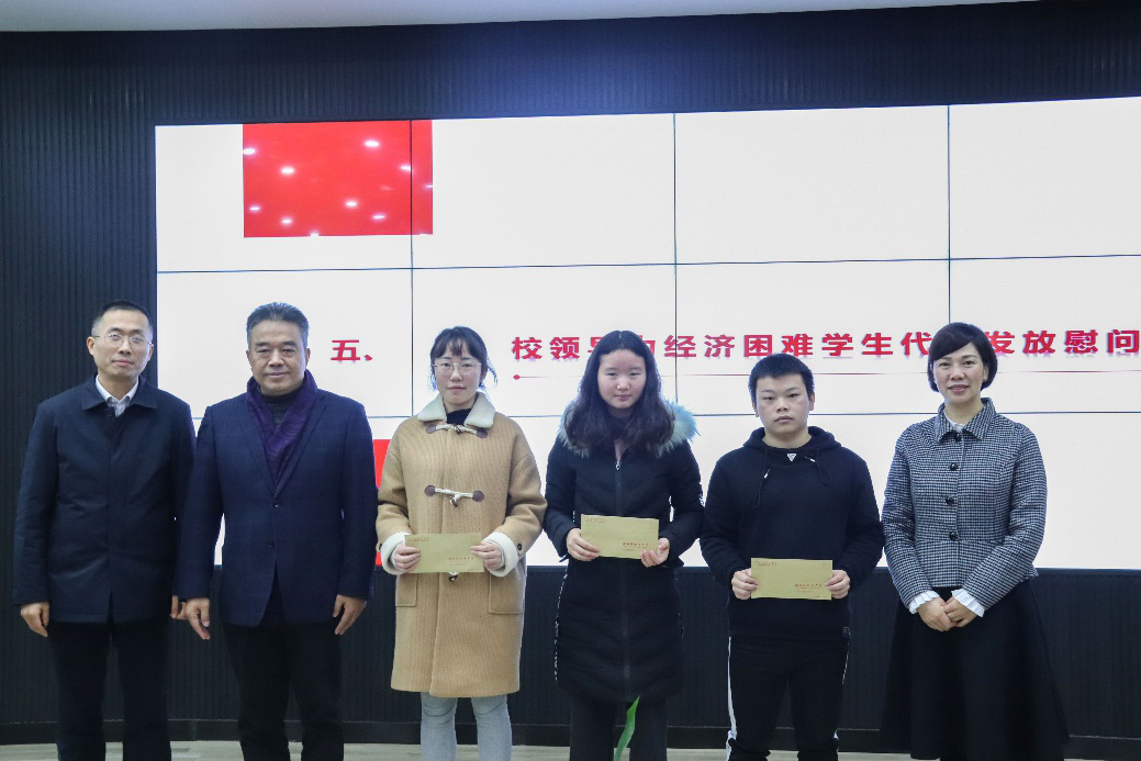 最后,明国辉、张艳及吴维均分别为参会的家庭经济困难生代表发放慰问金,并致以新年祝福。至此,本次会议圆满结束。