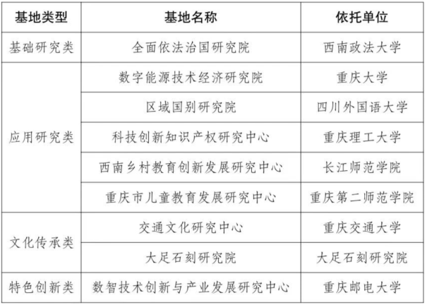 附:第四批重庆市人文社会科学重点研究基地入选名单